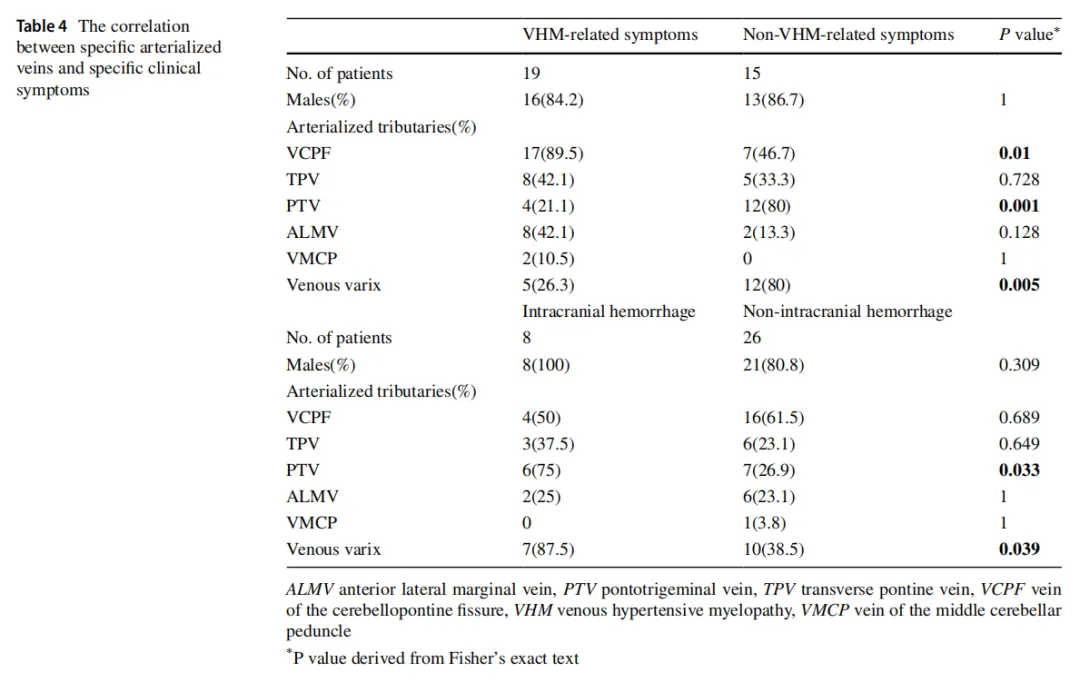 Patients with VHM-related symptoms showed a higher drainage proportion of the VCPF (P=0.01), while patients with intracranial hemorrhage symptoms showed a higher drainage proportion of the PTV (P=0.033).