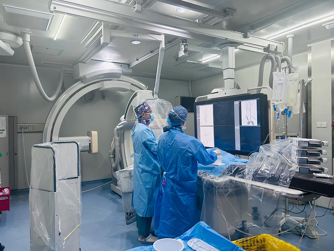 Yang Bin, Xu Ran, and other doctors perform interventional surgery on patients