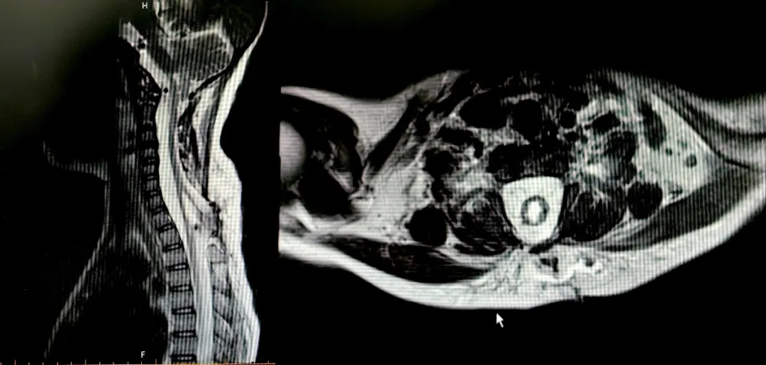 A postoperative review of Yang Yang's cervical spine MRI showed complete reabsorption of the spinal cord, and the surgical results were satisfactory