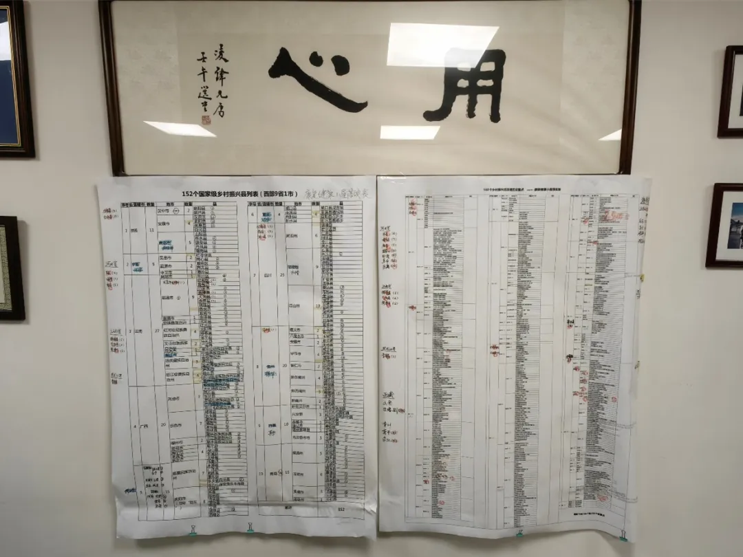 A map of the country showing the locations of health huts that have been established and are yet to be established in Professor Ling Feng's office