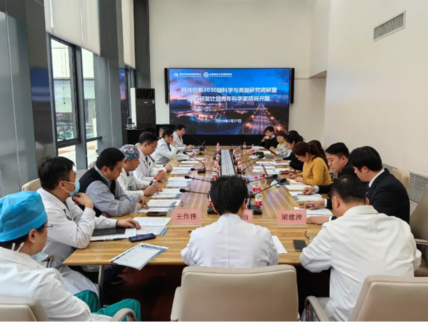 Director Lu Shan and Commissioner Huang Xin of the Public Health and Modern Medicine Division of the China National Center for Biotechnology Development, Deputy Director Qu Aijuan of the Science and Technology Division of Capital Medical University, Prof. Wang Yang, an expert from the Medical Research and Statistics Center of Fu Wai Hospital of the Chinese Academy of Medical Sciences, Prof. Shuai Mei of the Department of Electrical and Mechanical Engineering of the Beijing University of Aeronautics and Astronautics, President Zhao Guoguang, Deputy Secretary Tang Yi, Vice President Hao Junwei of Xuanwu Hospital of the Capital Medical University, Director Guo Xiuhai of the Science and Technology Division, as well as Dr. Zhang Hongqi, Director of Neurosurgery Department, and many other experts in the field attended the kickoff meeting.